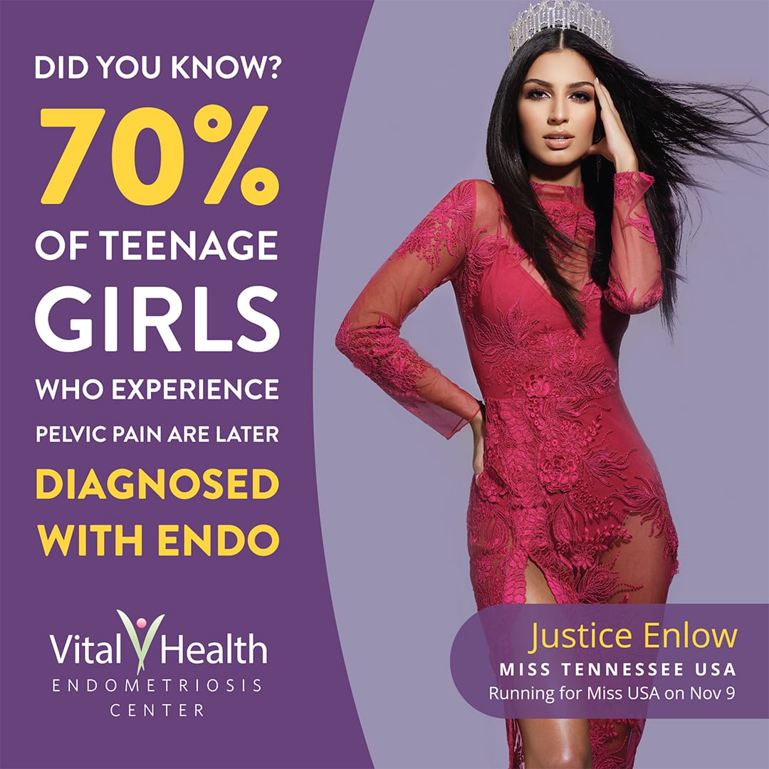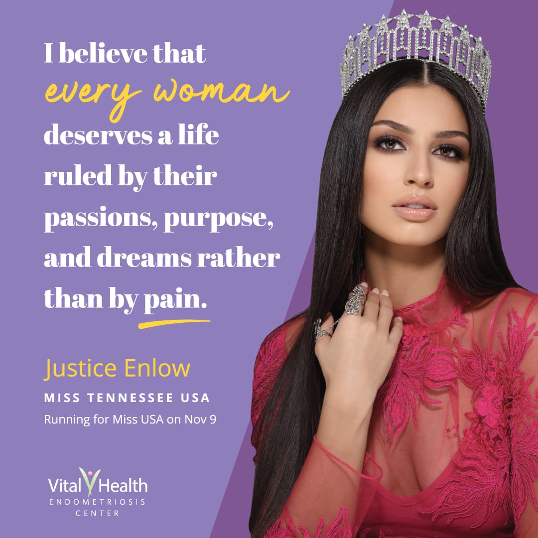 Vital Health patient Justice Enlow, Miss Tennessee USA 2020 fights for endo awareness as she strives to empower other women with endometriosis to find life-changing treatment as she did at Vital Health Endometriosis Center.